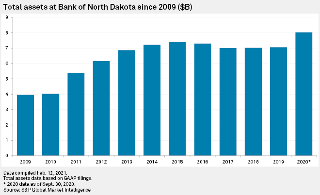 As of Dec. 31, 2020, North Dakota had the highest number of banks and credit unions under $10 billion in total assets per capita in the country, which proponents of public banking say indicates public banks and community banks can co-exist and the presence of a public bank may even support community banking.